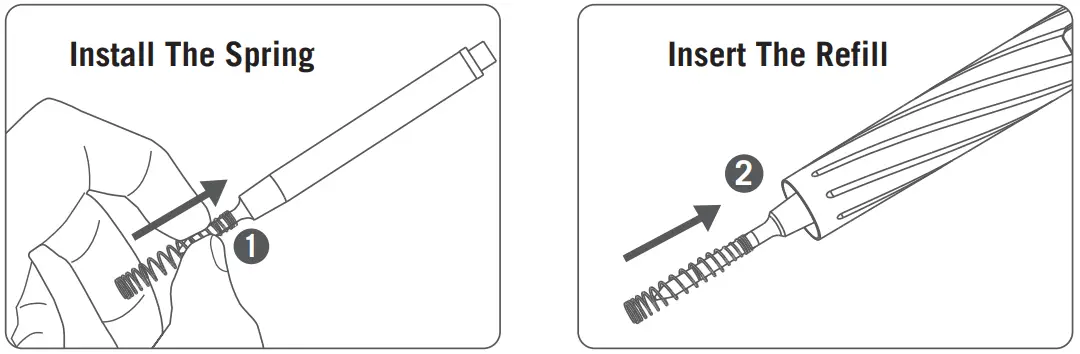 Note: Please remove the spring from the refill carefully and DO NOT stretch it.