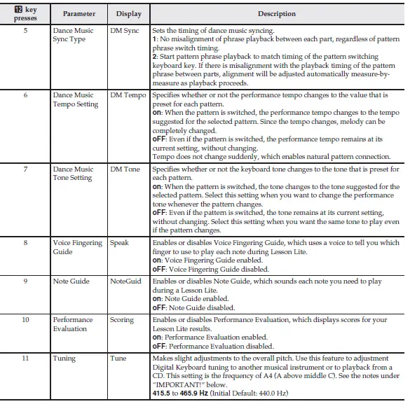 • Demo songs always start from song number 000(dance music demo song).