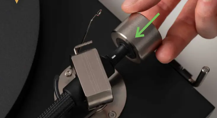 - Balance the tonearm by turning the counterweight forwards and backward on the rod.