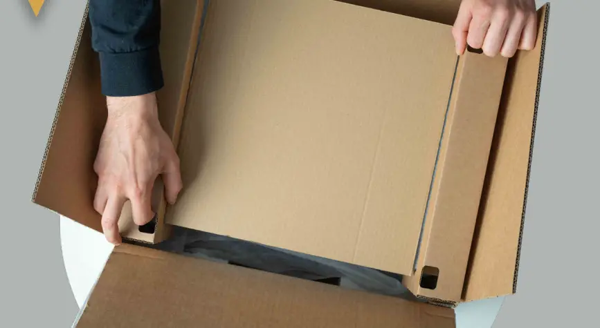 - Lift the wrapped turntable out of the box.