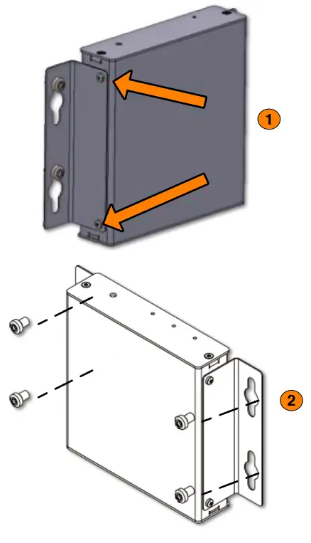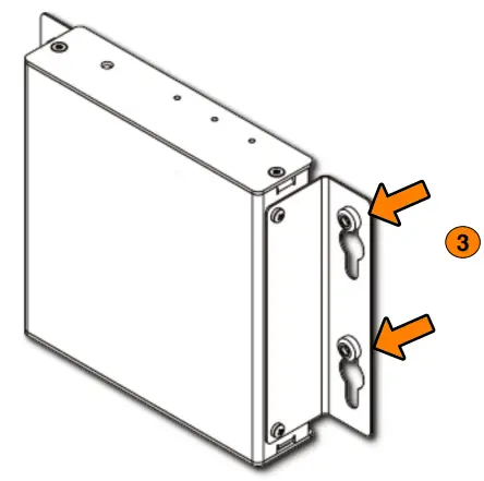 - Insert the supplied screws into the two (2) keyed slots on the L shaped bracket (as displayed on the image at the right).