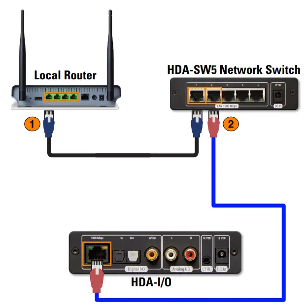 - Connect another ethernet cable to an available LAN port on the HDA-SW5 Network Switch.