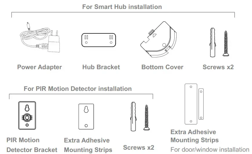 To set up and use Alarm System, you’ll need an iPhone or Android phone, the Smart Security System app, an unused indoor power outlet, a micro SIM card supporting 2G/GSM(for 2G version) or 4G network (for 4G version), and a Wi-Fi 802.11 b/g/n(2.4GHz) network connection (Hub cellular + Wi-Fi only).