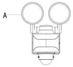 If needed, gently grasp the lamp head (A) and tilt or rotate to adjust the light coverage area.