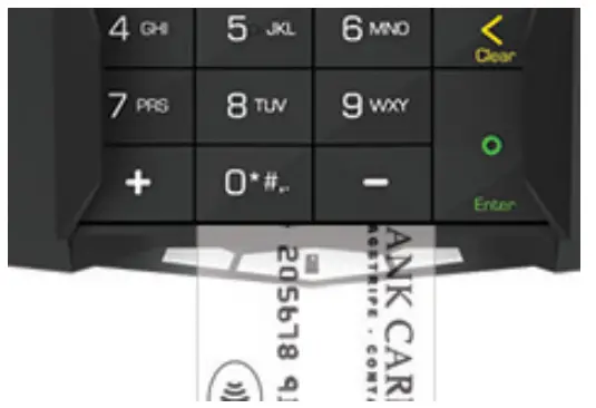 - Bring the card to the active zone above the contactless logo (at about 1cm).