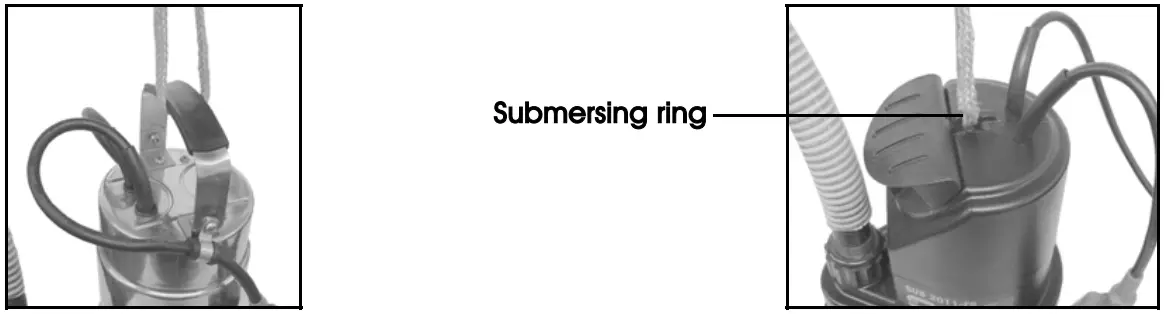 - Lower the pump into the water, do not use the mains lead or float switch to lower the pump beyond reach.
