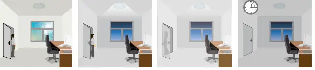 This function is inside the motion sensor to achieve bi-level control. for some areas which require a light change notice before switch-off. The sensor offers 3 levels of light: 100%–>dimmed light (natural light is insufficient) –>off; and 2 periods of selectable wailing time: motion hold-lime and stand-by period; Selectable daylight threshold and freedom of detection area.