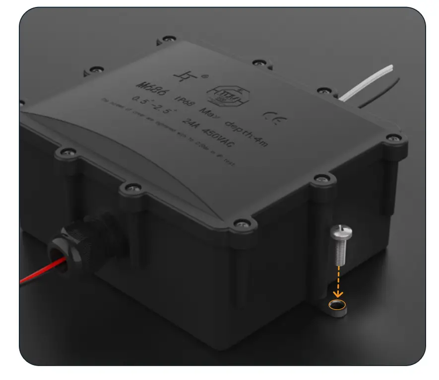 - Open the IP68 enclosure and remove the connectors and locknut using screw driver Take the electrical wire of 18AWG and cut in to 4 pcs (8-10cm) for AC line, Neutral, DALI+, DALI- respectively