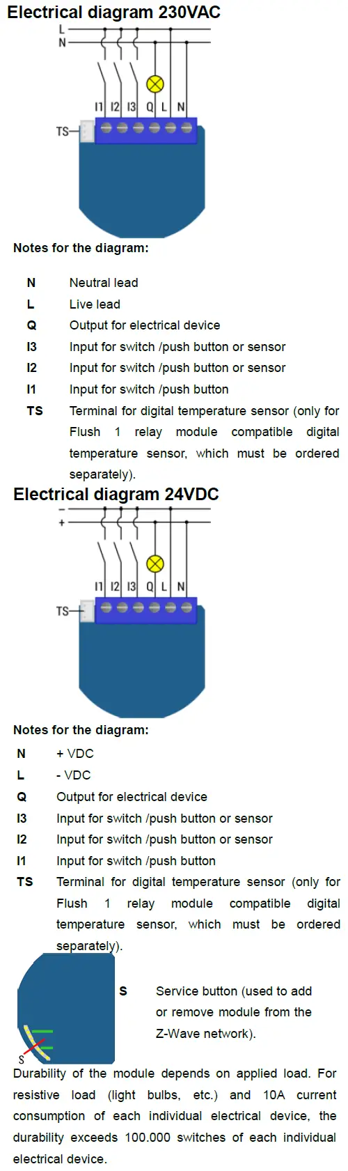 This Z-Wave module is used for switching on or off the electrical device (e.g. light, fan, etc …). The module can be controlled either through Z-wave network or through the wall switch.