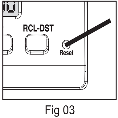Press the “RESET” button with the tip of a small non-metallic insulated tool, such as a pencil or toothpick.