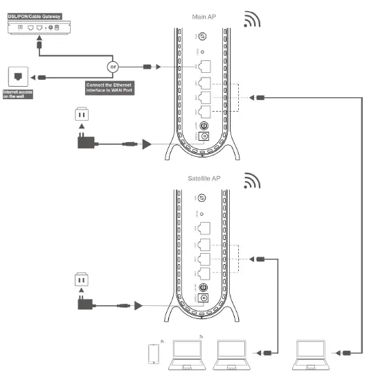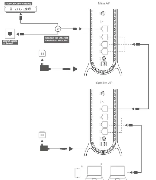 - Connect the Satellite AP to LAN port of your Main AP via network cable.