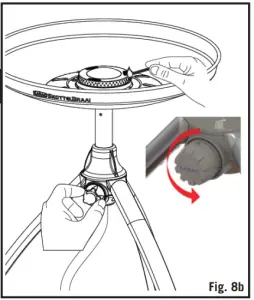 - Adjust the flame intensity to the desired level by turning the Control knob (K) clockwise to decrease the flame and anti-clockwise to increase it (See Fig.8a & b).