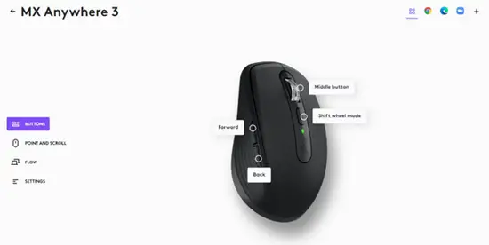You can scroll horizontally with your MX Anywhere 3! This is done with a two-button combination: Press and hold one of the side buttons and scroll with the wheel simultaneously. NOTE: The horizontal scroll is ON by default in your Logitech Options software. You can customize this feature in the Point & Scroll tab in Logitech Options. For more detailed information on the Horizontal scroll, click here.