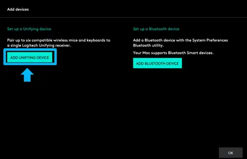 2. If this is the first device to pair with your Unifying receiver, click Add Devices.