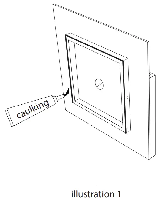 - To prevent moisture from entering the outlet box and causing a short, seal around the top and side perimeter between the fixture and the wall surface with weather resistant caulking (see illustration 1). The space at bottom should be left un-caulked to prevent moisture build-up. caulking