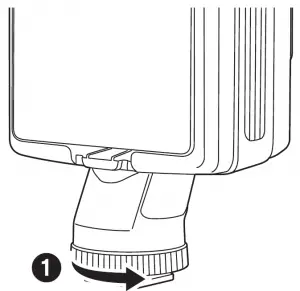 - Confirm the direction of the shoe so that the LED Video Light faces the correct direction when mounted, and then insert the shoe into the accessory shoe until it stops.