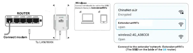 For Mobile phone users ConnecFind the SSID(Network your Mobile phone Name) to the printed U8 routers on the label network of the U8 router.