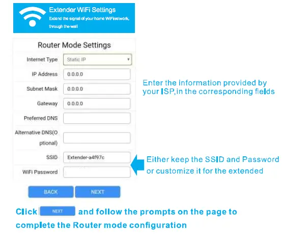 you choose PPPoE,enter the username and password provided by your ISP.PPPoE users usually have DSL cable modems. Extender WIFI Settings