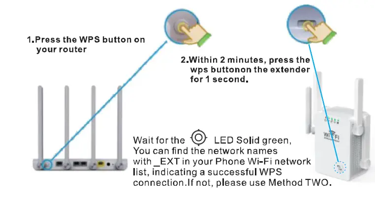 Using WPS (Wi-Fi Protected Setup) Method ONE Using WPS (Wi-Fi Protected Setup) Using WPS is an easier way to extend your host network. You are recommended to