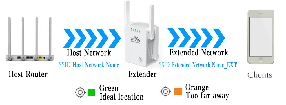 - Plug the extender into an electrical outlet between your router (Host Network) and the Wi-Fi “dead” zone.