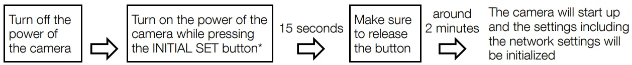 Follow the steps below to initialize the network camera. Retry if the camera does not start up normally.