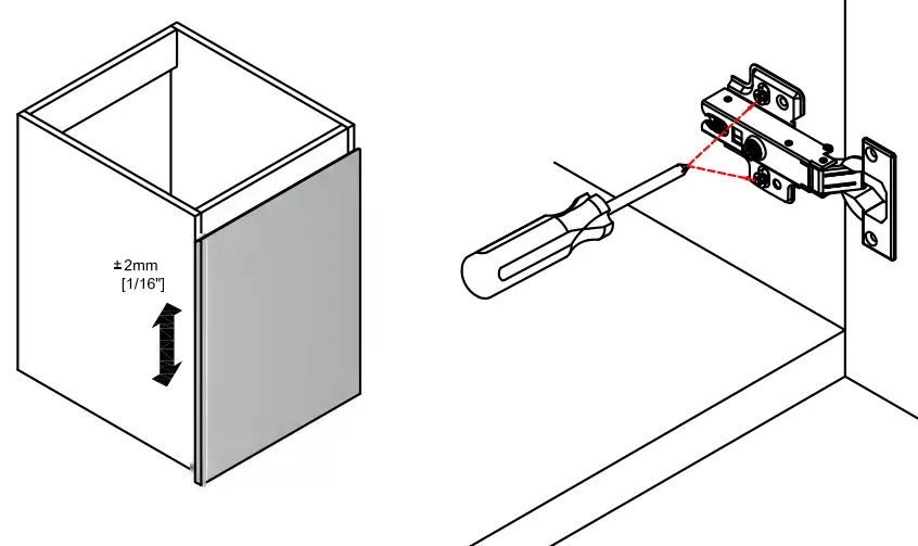 Release the base screw adjust the height of the door, and then tighten the screw.