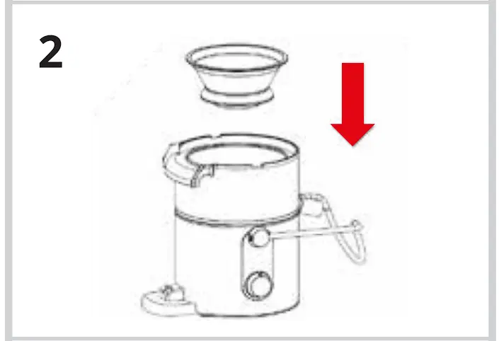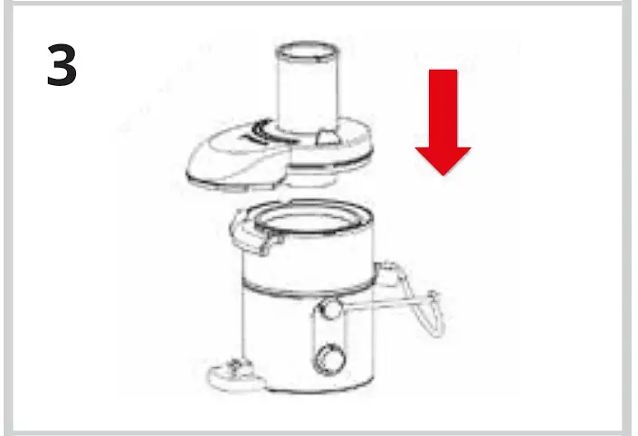 - Place the juicer cover ❻ on the juicing bowl d with the feed chute ❼ positioned centrally above the micro-mesh filter ❹. image 3