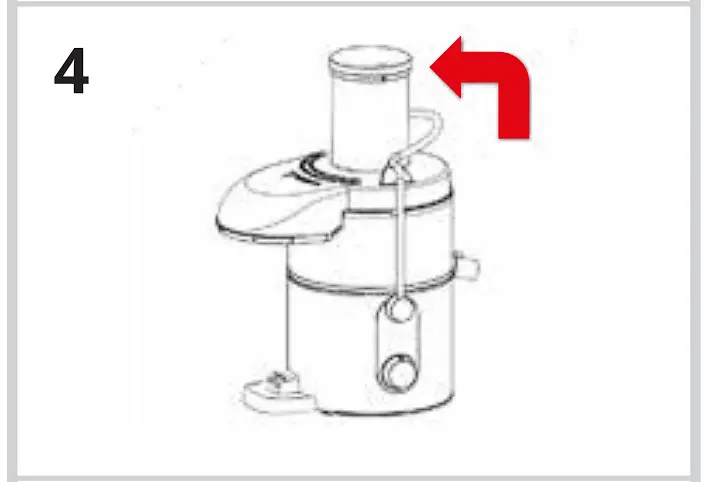 The juice will flow into the juice jug ❾ and the pulp will separate and accumulate in the pulp container ❺. - Do not allow the pulp container ❺ to overfill as this may prevent correct operation or cause damage to the appliance. To empty the pulp container ❺ during juicing, turn the rotary switch ❿ to ‘0’ and remove itas described in disassembling instructions. Replace the empty pulp container ❺ before continuing to juice.