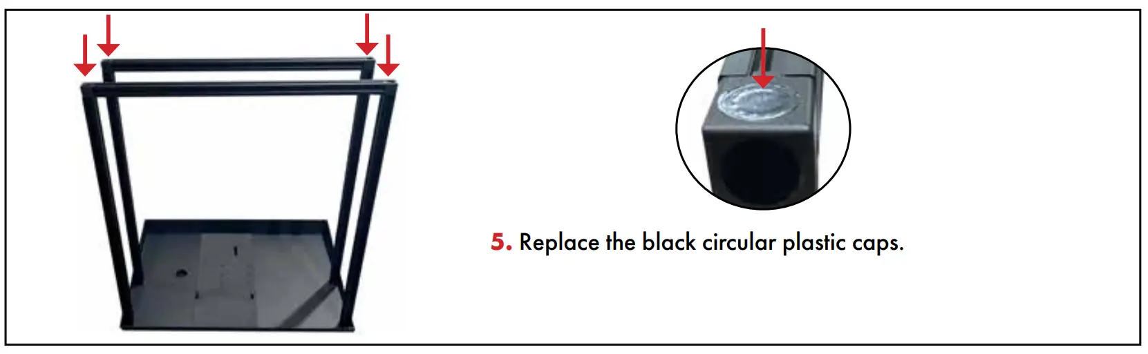 - Replace the black circular plastic caps