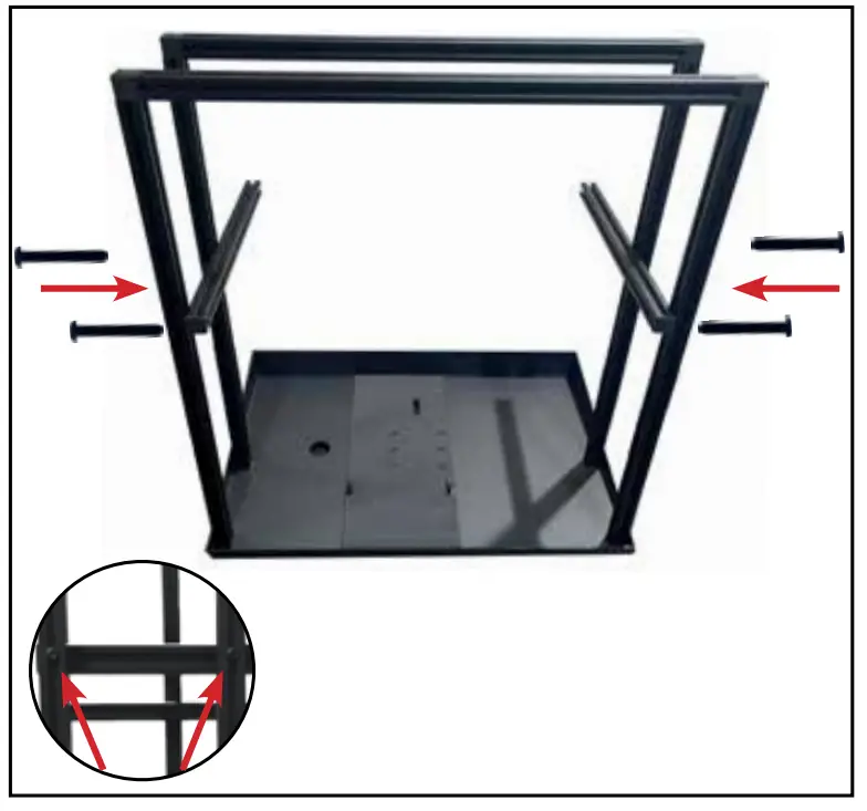 - Use M4 CRV hex tool (Item I) to attach screws to the vertical extrusions