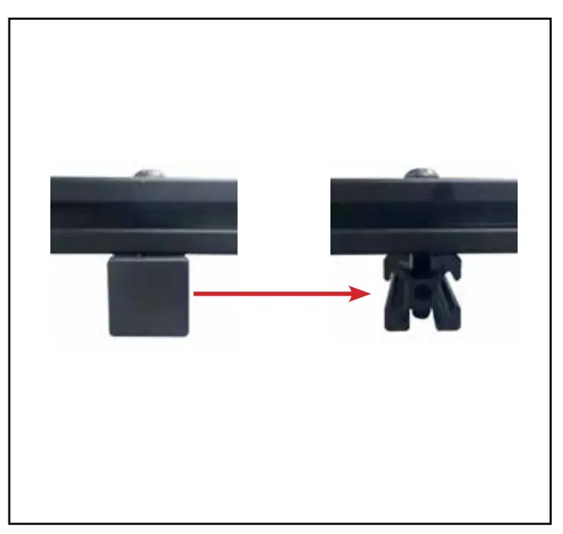 - Remove squared black plastic end caps from 1 & 2 extrusion