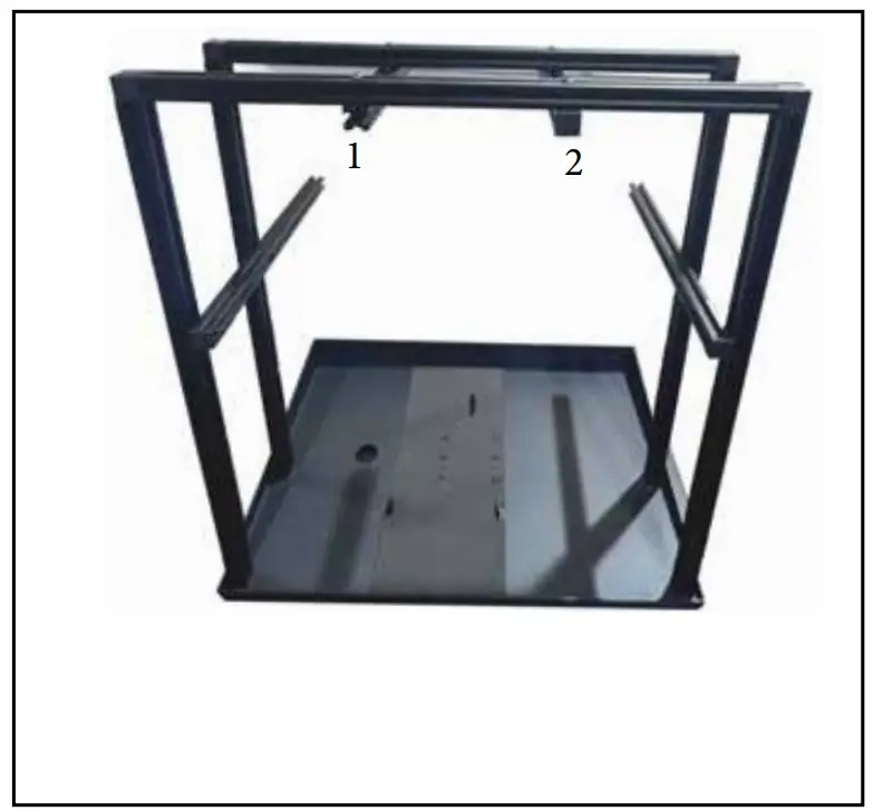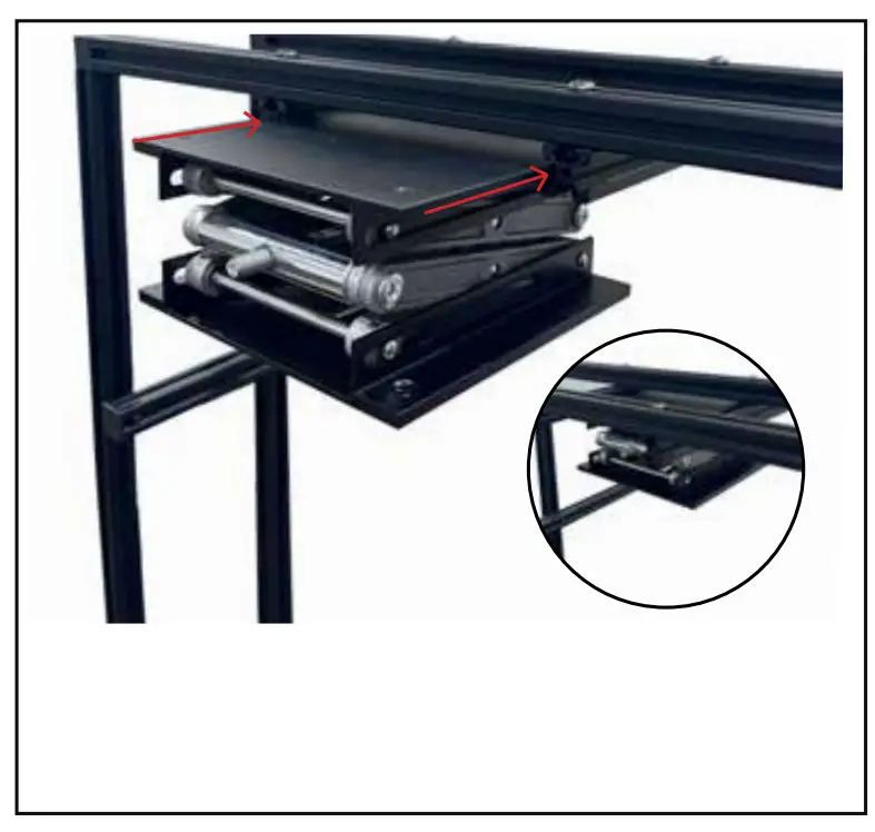 - Insert the 150 x 150 PTZ scissor lift (Item G) in between the extrusion (1 & 2) as shown above.