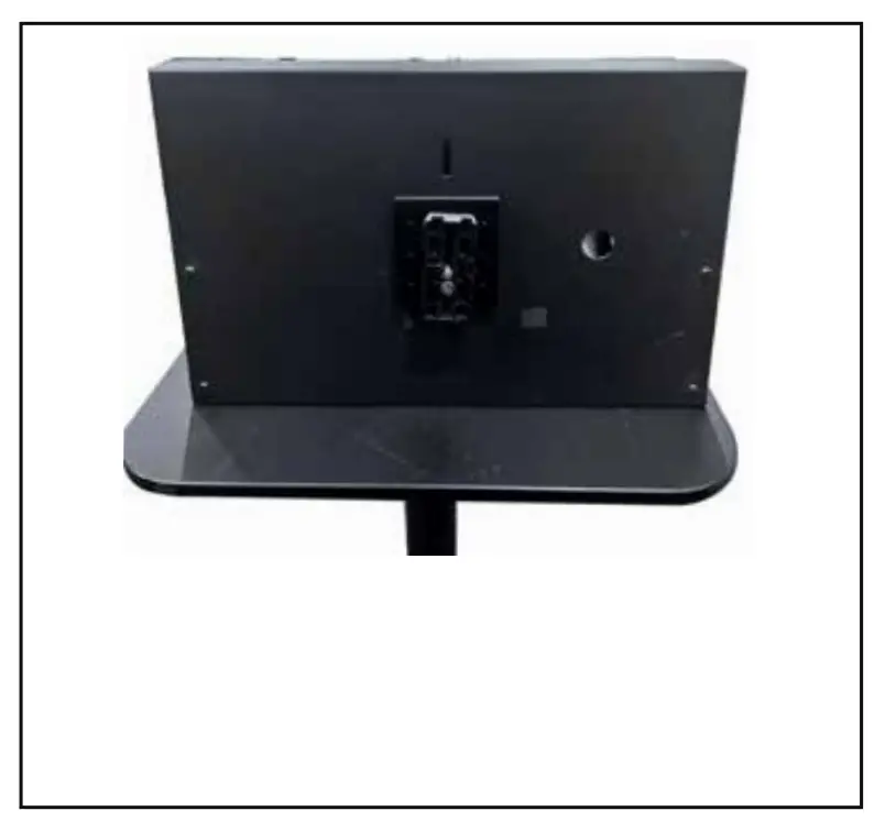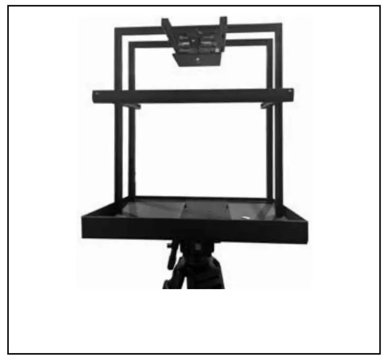 - Install the 15” LCD Control Unit (Item A) by inserting the 9mm long ¼ thumb screw with red dot (Item J) through the slot in the TP-900 metal base tray with tripod plate(Item F).