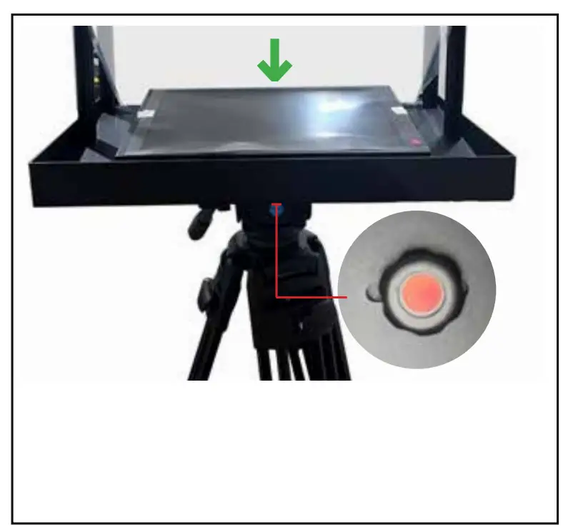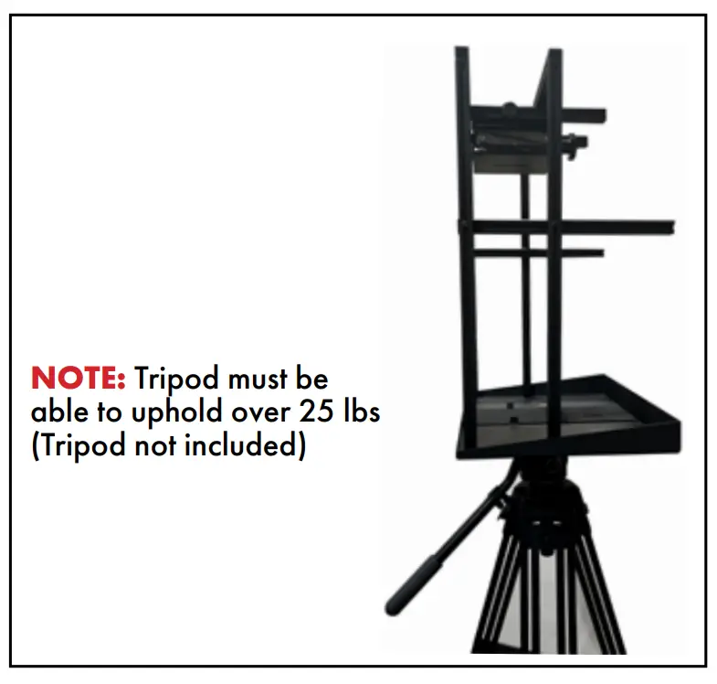 - Ensure that adjustment knob is facing the rear of the teleprompter as shown.