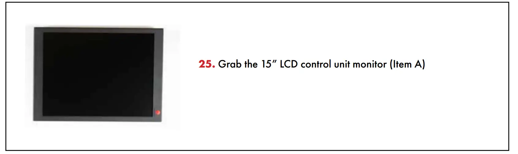 - Grab the 15” LCD control unit monitor (Item A)