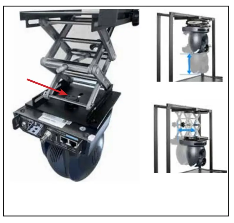 - Grab your PTZ camera. (camera not included) and turn upside down to install onto the PTZ scissor lift (Item G).