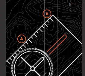 If your compass lacks the corresponding map measuring scale, use the regular Metric or Imperial Ruler found on the edge of the baseplate.