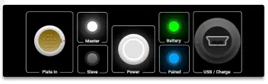 The battery status LED on each force plate illuminate according to the status of the plate’s battery.
