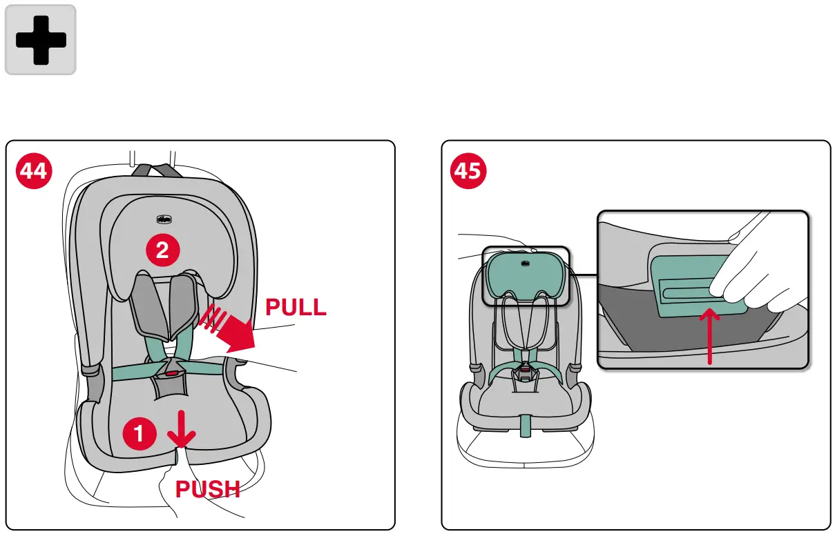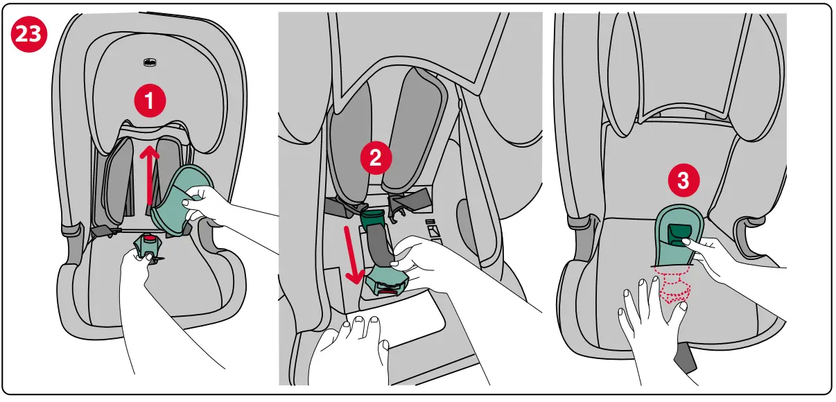 The fabric cover must only be replaced with another cover approved by the manufacturer, since it is an integral part of the child’s car seat and, therefore, one of its safety elements.