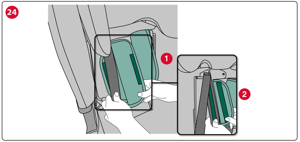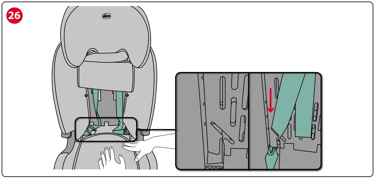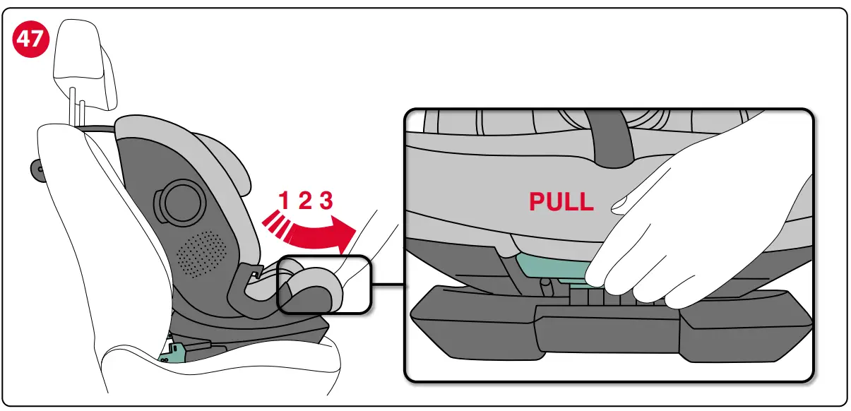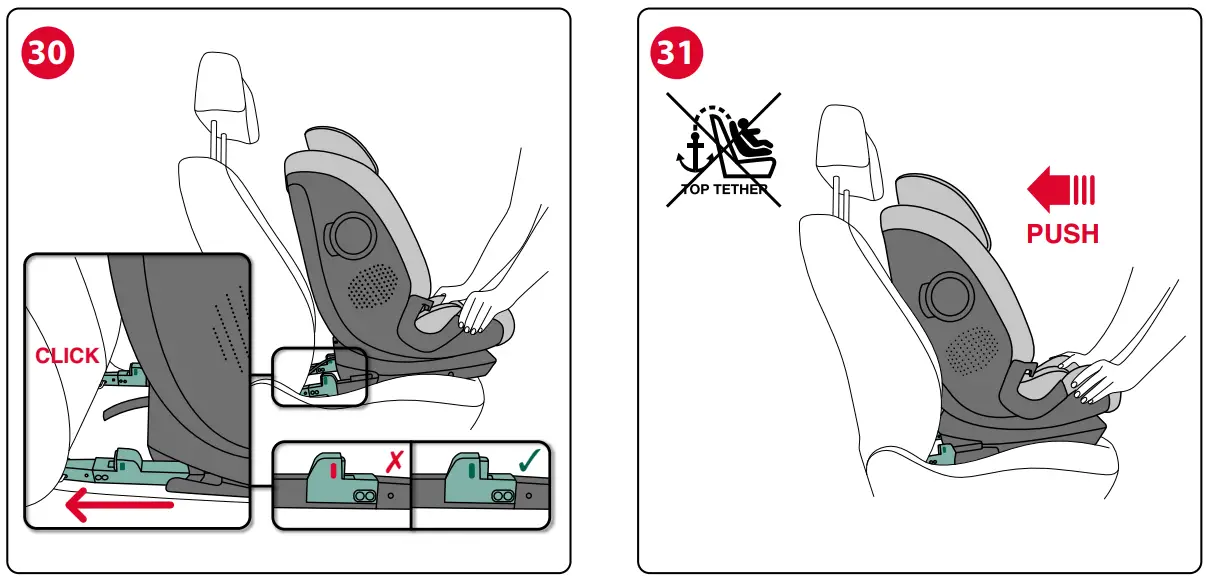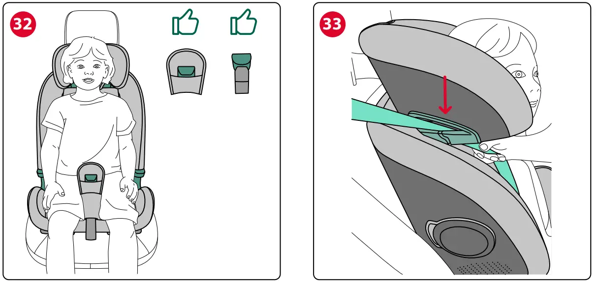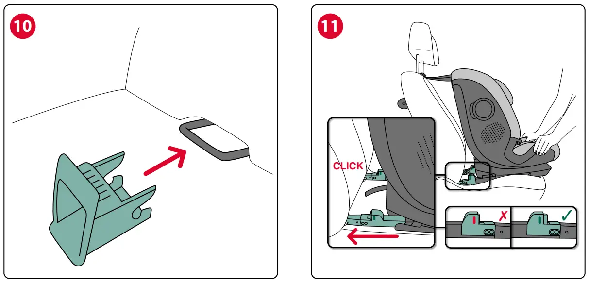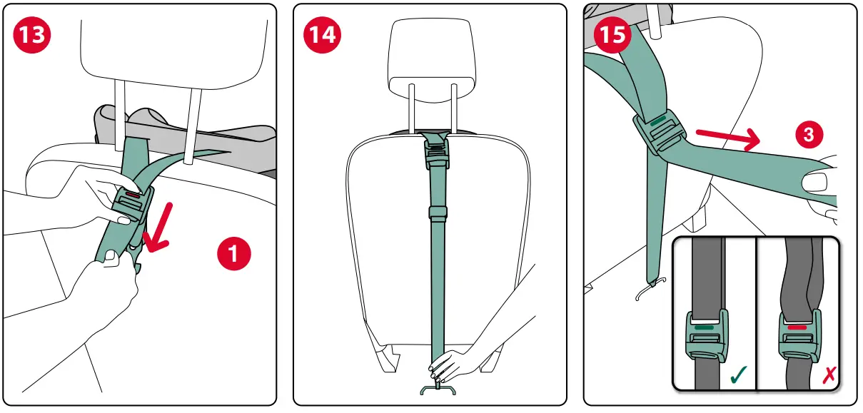 - Make sure that the buckle of the car’s three-point belt is not too far up. Otherwise, try to install the car seat on a different seat in the vehicle.