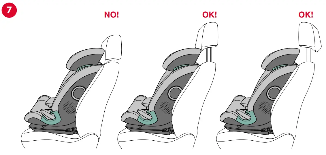 - Check that the car seat headrest does not interfere with the headrest of the child’s car seat: do not push it forwards. If this is the case, remove the headrest from the car seat on which the child car seat is fitted, without resting it on the luggage rack.