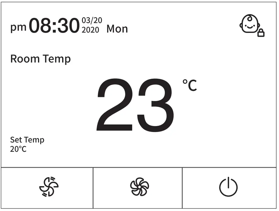 ![]() | Set the fan speed in home page, or switch options in other interface |