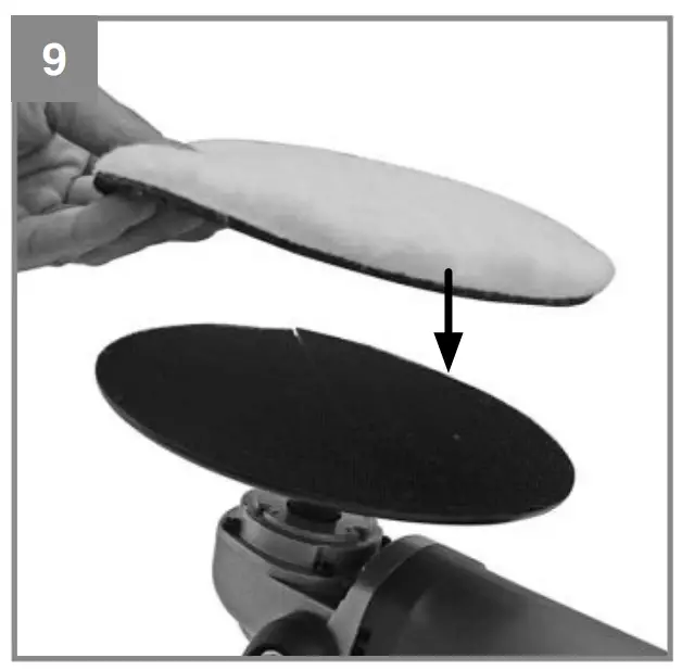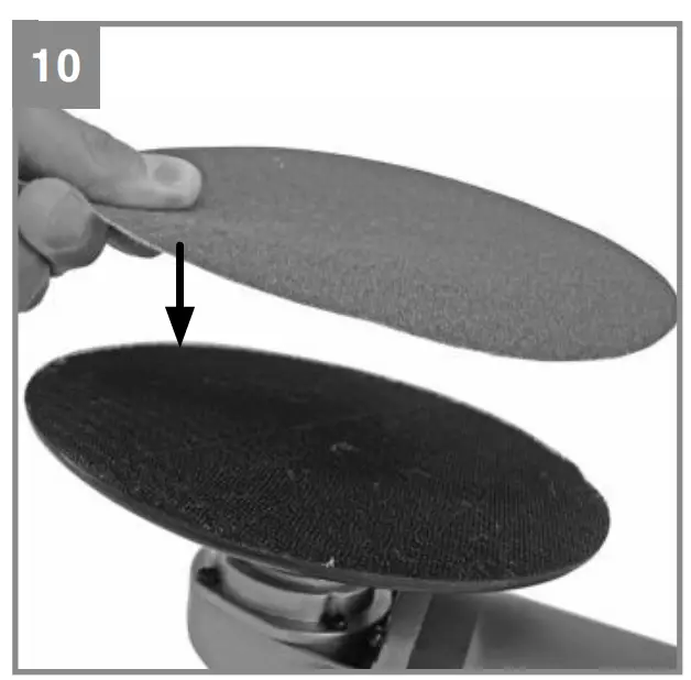Use the supplied sanding attachments (Fig. 10) for sanding purposes. The Velcro fastener enables easy changing of the sanding attachments.