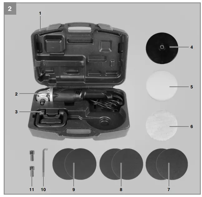 The machine is designed for polishing coated surfaces and for sanding wood, iron, plastic and similar materials using the appropriate abrasive paper.