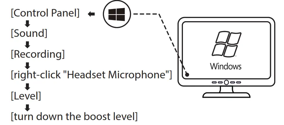 3). Please check if the microphone boost in Windows or other systems) is turned off or turned down. If not, you will need to turn down the microphone boost level by the following steps. (For Windows 7/10 Home System)