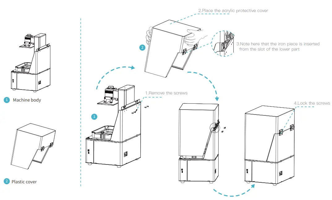 Tips: How to change resin: Take out the resin vat slowly, pour out the remaining resin into the container, clean the resin vat, pour in new resin, and then install the resin vat to the machine.