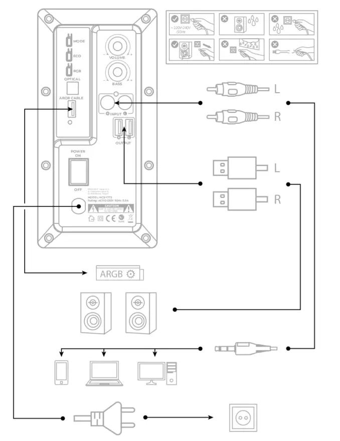 You can change the backlight modes by using the RGB button. In rainbow and pulsed modes, through pressing the RGB button again stops the current color. To use ARGB mode, the speakers must be uber the supplied cable can be connected to the ARGB controller. The available backlight modes are Rainbow, Vibrant, Music, ARGB.
