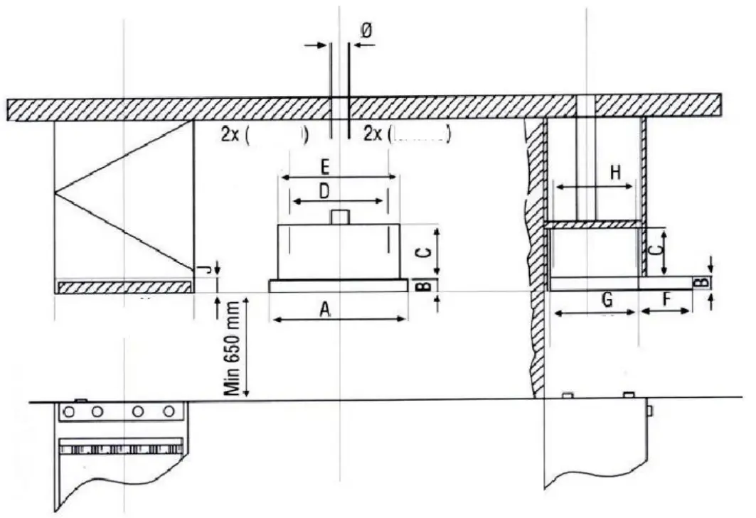 SEE FIGURE A: - At the installation cooker hood should be at least 65 cm above the gas consuming ovens and at least 75 cm above the mixed fuel consuming ovens.