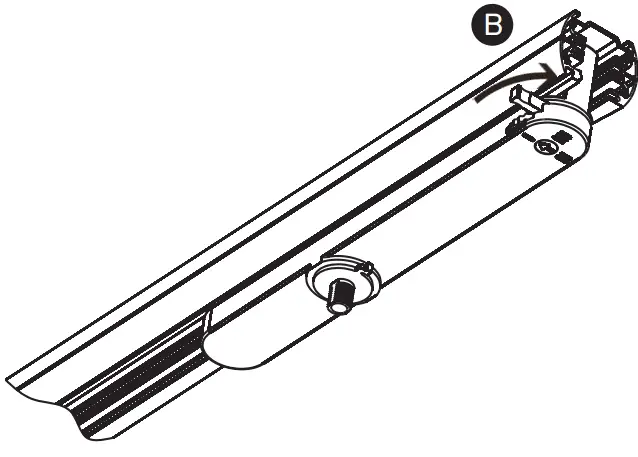 - To mount the track adaptor into the track system, first check that the selector knob A is at OFF position and the adaptor lock B is disengaged.