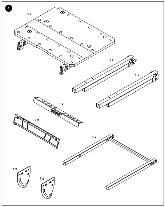 The worktop section is pre-assembled; the lower section still has to be fully assembled. Place the right and left leg of the table on a flat, clean surface